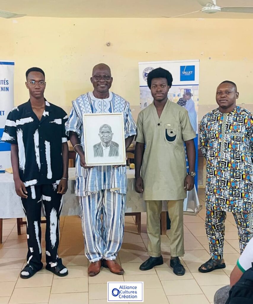 Au terme des échanges, un cadeau surprise attendait l’auteur. Il s’agit d’une toile, réalisée à son effigie et inspiré de la couverture de son livre, pour saluer son service au profit de la nation et de la jeunesse béninoise. La rencontre littéraire s’est achevée par une visite guidée à travers la cité historique d’Abomey.