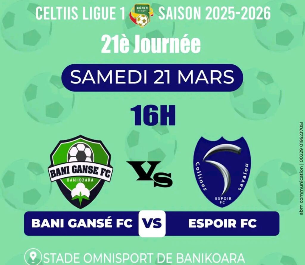 Le championnat béninois aborde un tournant avec la 21e journée, programmée les 21 et 22 mars 2026. À ce stade de la saison, il ne s’agit plus seulement de bien jouer, mais de prendre des points coûte que coûte. Et le calendrier propose justement des duels à fort enjeu. Samedi, plusieurs rencontres pourraient déjà faire bouger les lignes.