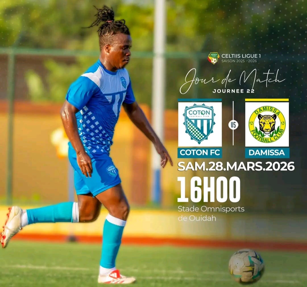 Le championnat reprend ses droits, ce week-end des 28 et 29 mars 2026, la Ligue 1 béninoise entre dans une zone de turbulences . À 12 journées de la fin, chaque point devient stratégique, chaque faux pas potentiellement fatale. Le coup d’envoi sera donné ce samedi avec un choc à enjeux du côté de Ouidah. Coton FC, solide dans son fauteuil de prétendant au sacre, reçoit Damissa. Sur le papier, les Cotonculteurs partent favoris, mais la formation du Nord a déjà prouvé qu’elle savait voyager et faire tomber des équipes mieux classées.