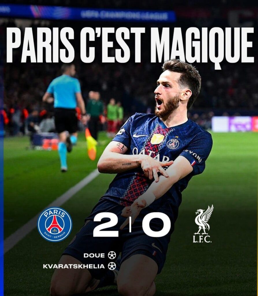 Le jeune Désiré Doué a ouvert le score, symbole d’un collectif parisien en pleine confiance, avant que Khvicha Kvaratskhelia ne vienne enfoncer le clou. Le Géorgien, encore décisif sur la scène européenne, a confirmé son statut d’homme des grands rendez-vous. Et au vu des nombreuses occasions franches, l’addition aurait pu être bien plus lourde pour Liverpool.