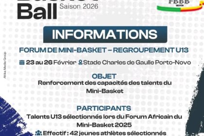 Du 23 au 26 février, le mythique Stade Charles de Gaulle vibrera au rythme des dribbles et des éclats de rire. La Fédération Béninoise de Basketball y organise le Forum Mini-Basket regroupement U13, u...